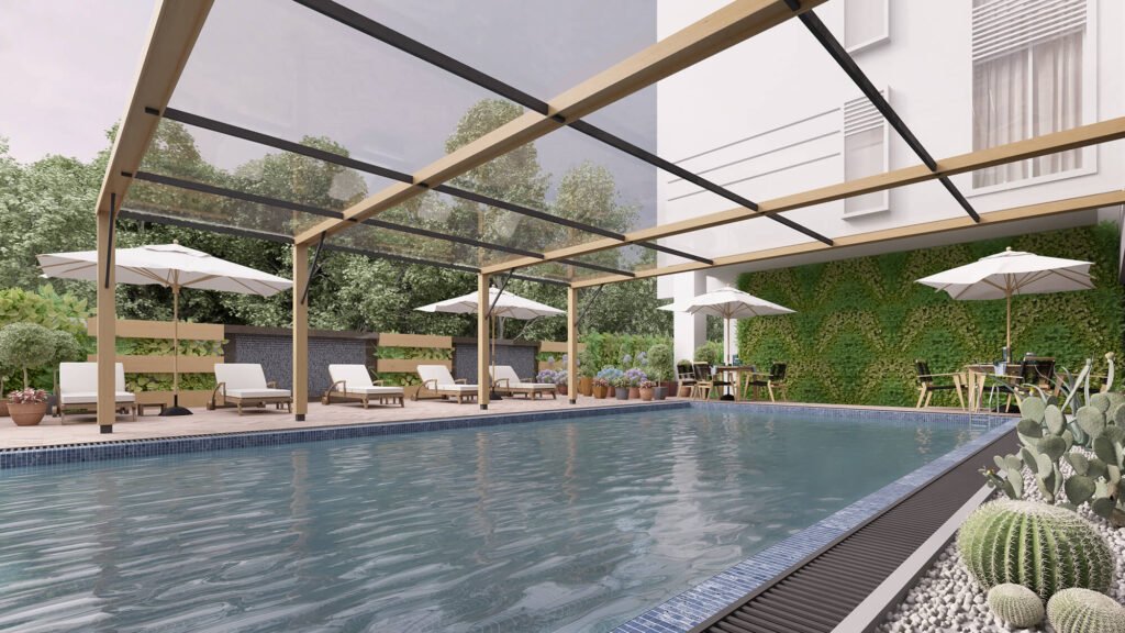 Clubhouse, swimming pool, gym, mini-cinema, rooftop garden and BBQ area, children’s play area, prayer space, and more Zameen Developments. Support features like smart access, solar backup (common areas), HVAC systems, cargo elevators, valet parking, grocery delivery, laundry services, 24/7 management, and security systems.